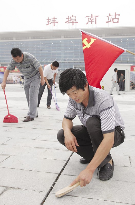 625日上午,為慶祝中國共產(chǎn)黨建黨90周年暨京滬高鐵開(kāi)通,蚌投集團黨委組織集團本部及所屬19個(gè)子公司共計198名黨員去高鐵蚌埠南站義務(wù)勞動(dòng),清理南站廣場(chǎng)建筑垃圾并清掃地面,為高鐵通車(chē)做出一個(gè)黨員力所能及的貢獻。