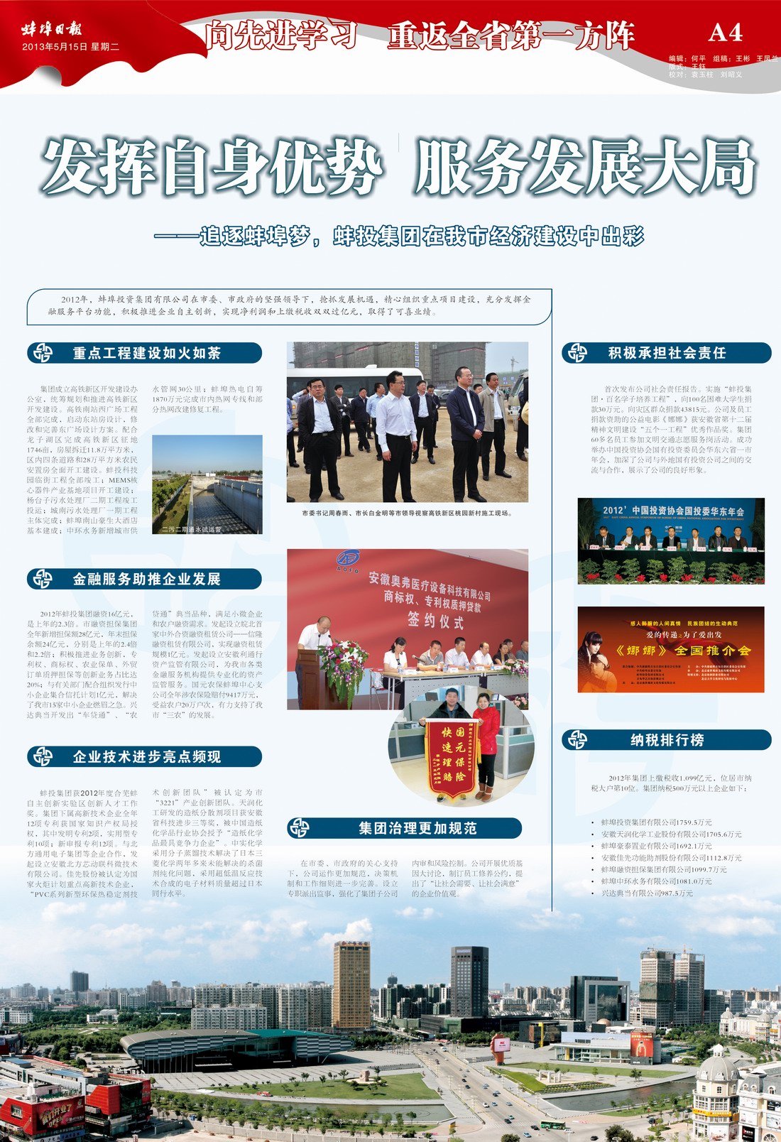 蚌投集團在我市經(jīng)濟建設中出彩—蚌埠日報先進(jìn)專(zhuān)版