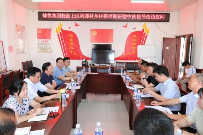 9月19日上午,蚌投集團黨委副書(shū)記、總經(jīng)理陳建功,黨委委員、副總經(jīng)理陶志剛帶隊赴鄉村振興幫扶村淮上區周郢村,開(kāi)展鄉村振興調研暨中秋佳節走訪(fǎng)慰問(wèn)活動(dòng),集團辦公室、市農業(yè)科技投資公司相關(guān)負責同志陪同參加。