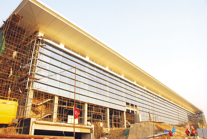 高鐵站玻璃幕墻安裝過(guò)半
