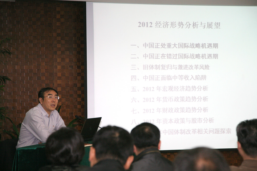 此次培訓由中國政法大學(xué)資本研究中心主任劉紀鵬主講,劉紀鵬主任對當前美國的衰落、中國的優(yōu)勢、歐債危機等國際形勢進(jìn)行了深入的分析,并著(zhù)重分析了我國當前經(jīng)濟現狀。他認為中國應抓住機遇,統一認識,正確決策與政策是關(guān)鍵,否則會(huì )錯過(guò)國際戰略機遇期。同時(shí)重點(diǎn)分析了我國2012年宏觀(guān)經(jīng)濟趨勢,提出了“化匯為產(chǎn),外儲內用,規避風(fēng)險”的對策,對明年我國貨幣政策、財政政策、資本政策闡述了自己的觀(guān)點(diǎn)。劉紀鵬主任講課內容豐富、觀(guān)點(diǎn)鮮明、獨特,對于公司進(jìn)一步強化資本運作具有指導意義和借鑒作用。