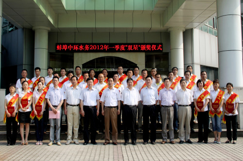 近日,中環(huán)水務(wù)隆重舉行2012年一季度“黨員之星”、“員工之星”頒獎儀式。受表彰的“雙星”和各部門(mén)負責人、部分員工代表百余人參加。紀委書(shū)記傅益群主持會(huì )議,副總經(jīng)理劉西華、工會(huì )主席齊中和分別宣讀了授予2012年一季度“黨員之星”、“員工之星”的表彰決定,并向獲得“雙星”的同志頒發(fā)了榮譽(yù)證書(shū)。